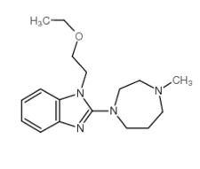 中文名稱:依美司丁 中文別名:1-(2-乙氧基乙基)-2-(4-甲基-1,4-二氮雜庚烷-1-基)苯并咪唑; 依美斯汀; 英文名稱:emedastine 英文別名:1-(2-ethoxyethyl)-2-(4-methyl-1,4-diazepan-1-yl)benzimidazole; 1-[2-(ethoxy)ethyl]-2-(4-methyl-1-homopiperazinyl)benzimidazole; Emedastinum [INN-Latin]; Emedastina; 1-methyl-4-(1-(2-ethoxyethyl)-1H-benzimidazol-2-yl)[1,4]diazepane; 查看更多英文別名 CAS號:87233-61-2 分子式:C17H26N4O 分子量:302.41500 精確質量:302.21100 PSA:33.53000 LogP:2.21760