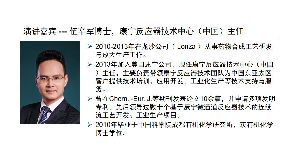 伍辛軍博士,康寧反應器技術中心(中國)主任。
