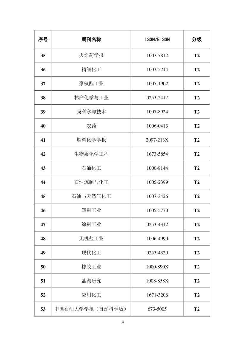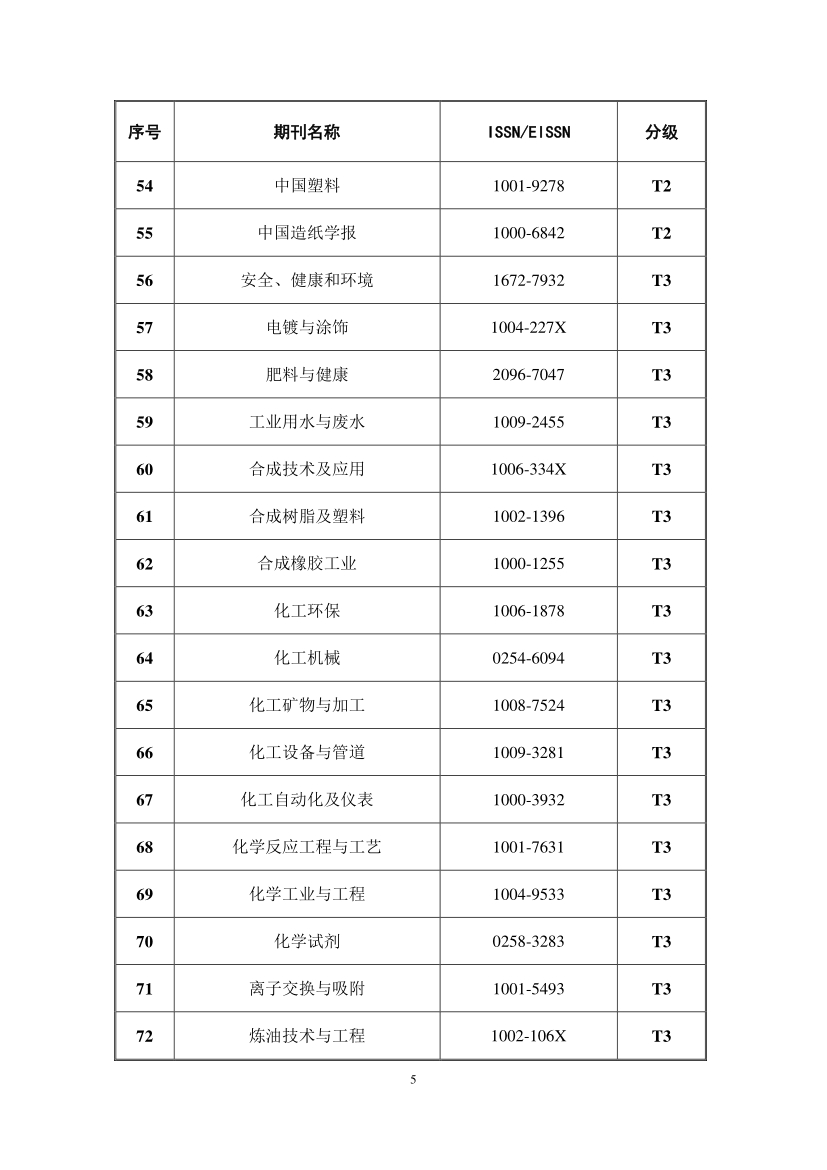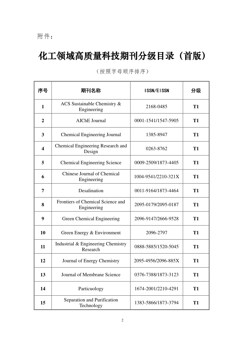 導讀:為加快推進世界一流科技期刊建設,推動建設中外期刊同質等效的評價體系,在中國科協的統一部署下,中國化工學會以“同行評議、價值導向、等效使用”為原則,采取定量評價與定性評價相結合的方式,負責組織實施了化工領域高質量科技期刊分級目錄認定及發布工作。經過期刊征集、指標構建、專家初評、審定終評、結果公示等環節,最終共有93種期刊進入首版分級目錄,其中T1級期刊19種,T2級期刊36種,T3級期刊38種。現予正式發布。