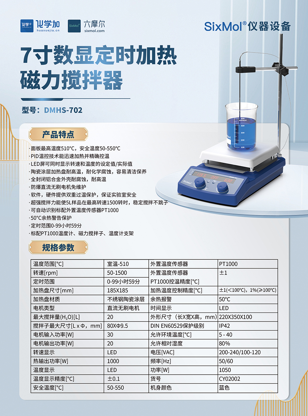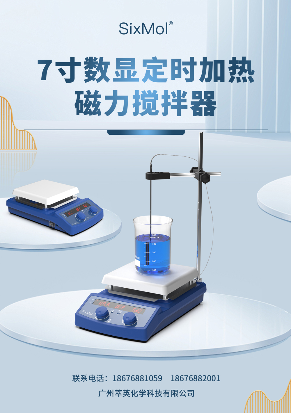 SixMol 7寸數顯定時加熱磁力攪拌器