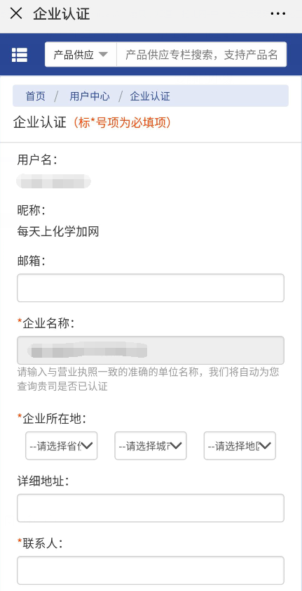 填寫好企業(yè)名稱,會跳轉(zhuǎn)到企業(yè)認證的頁面,帶*的為必填項目,盡可能多填全信息,并勾選我已閱讀,提交認證。等待審核通過后即可發(fā)布供需。